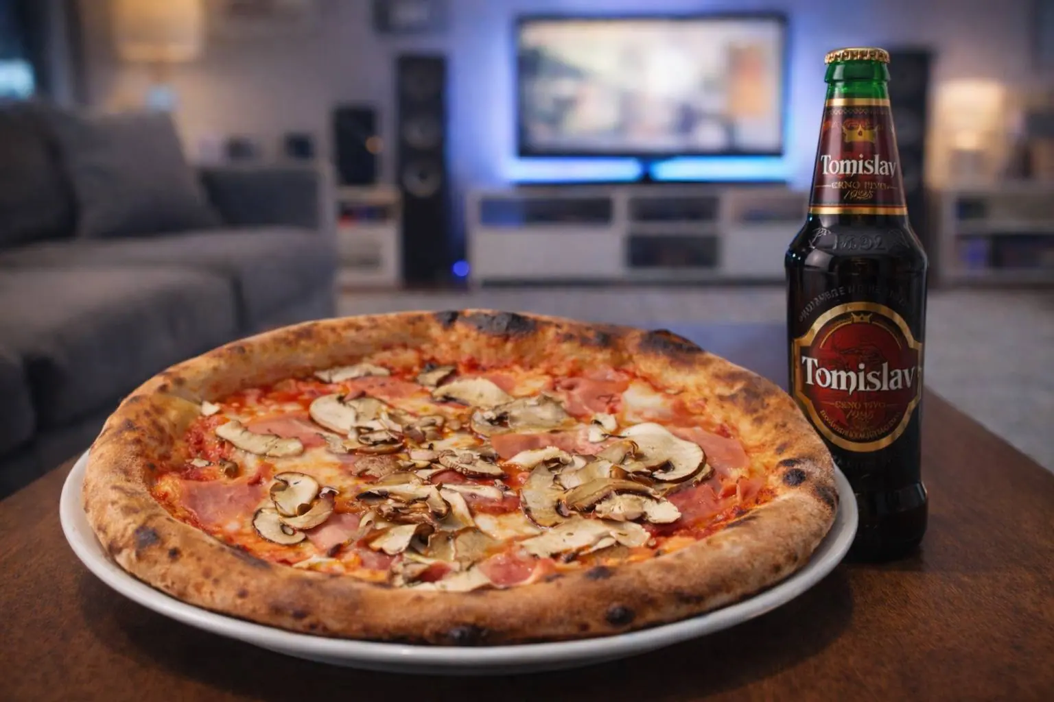 Capricciosa s bogatim nadjevom + hladno Tomislav pivo. Idealno za kasni zalogaj.
